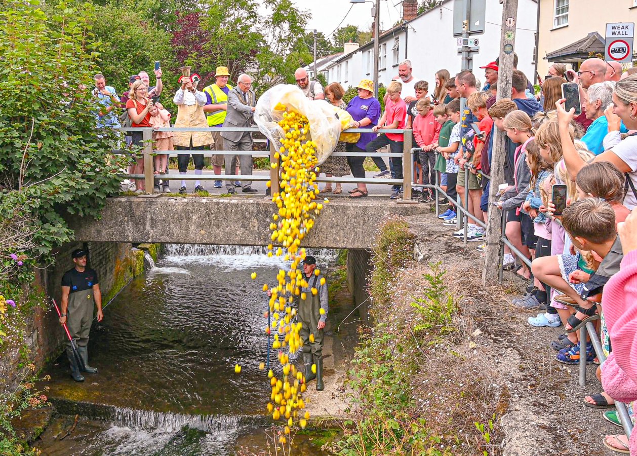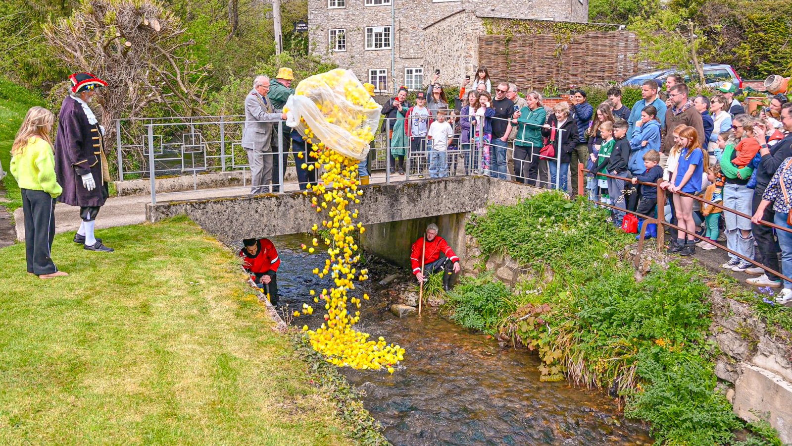 Everyone goes a bit quackers at midday on Thursday 1st January 2026 as hundreds of bright yellow toy ducks race down the River Lim in Lyme Regis. Starting at Woodmead Road bridge, the ducks paddle past Lymbrook Cottages and Jericho to the finish line at Jordan Flats.