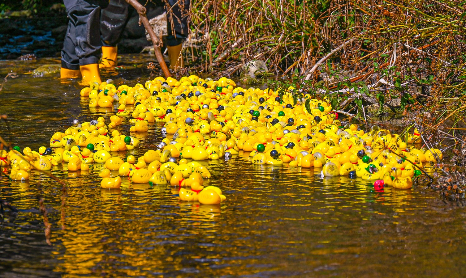 Volunteers ensure every duck is safely collected after the finish — so it’s fun and eco-friendly!